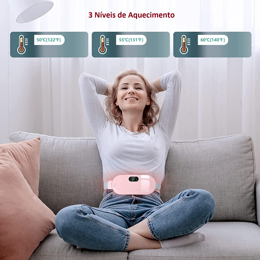 A Cinta Térmica Massageadora foi desenvolvida para trazer alívio, relaxamento e bem-estar durante os períodos de cólicas menstruais e incômodos abdominais.