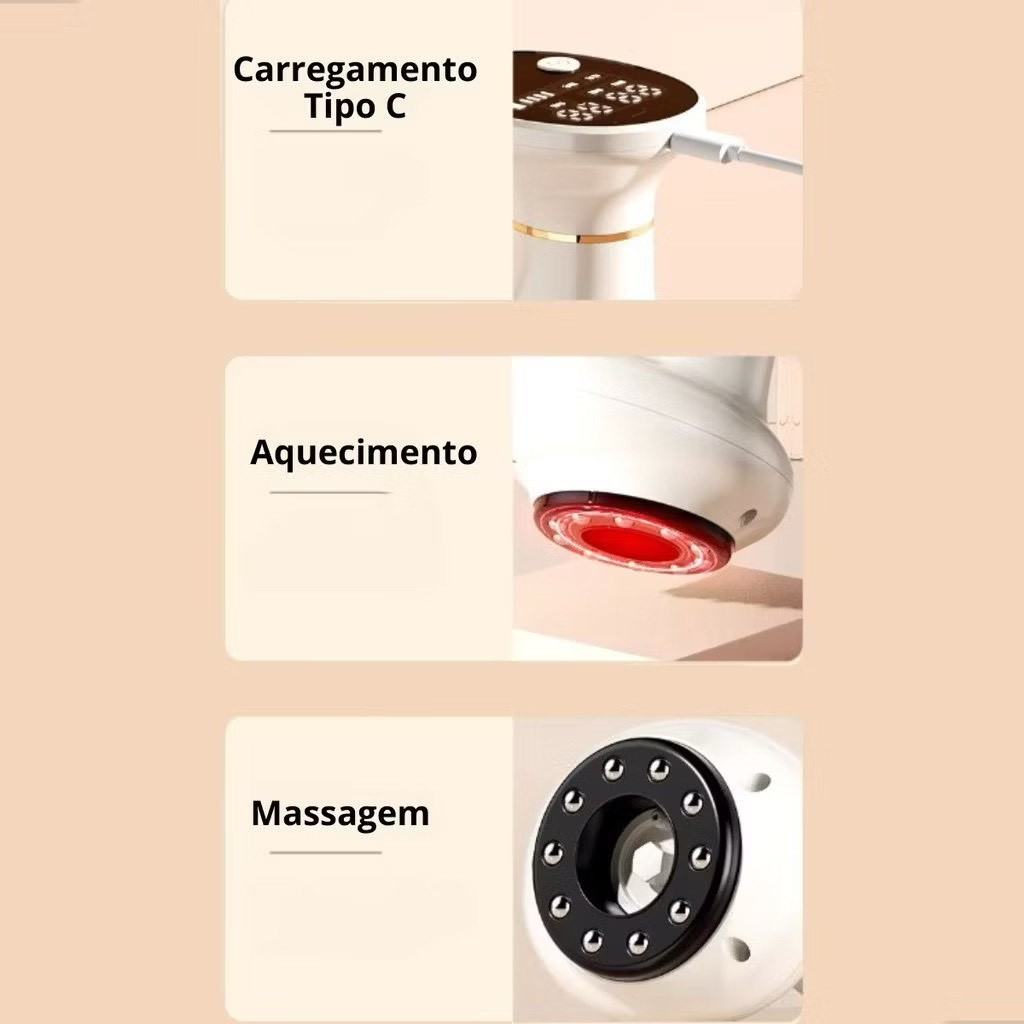 O Aparelho de Massagem por Sucção estimula a circulação e ajuda a aliviar pontos de tensão, proporcionando uma sensação de leveza e bem-estar logo nos primeiros minutos de uso.